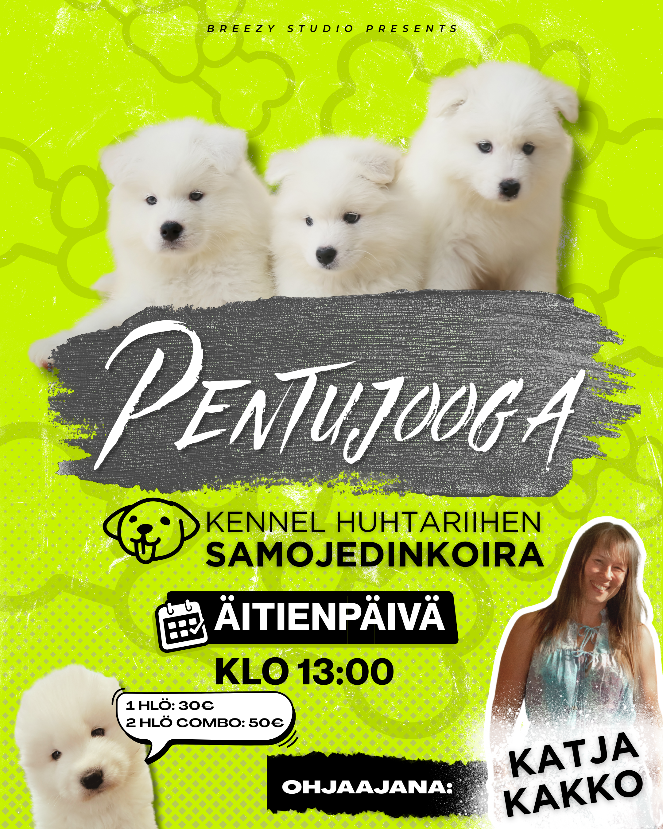 Lempeä joogahetki yhdistettynä Kennel Huhtariihen hurmaaviin samojedinkoiran pentuihin 🐶✨